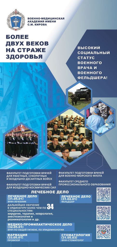 В Военно-медицинской академии (г.Санкт-Петербург) проводятся мероприятия по отбору граждан для обучения по специальностям с высшим (врач) и средним (фельдшер) военным медицинским образованием.